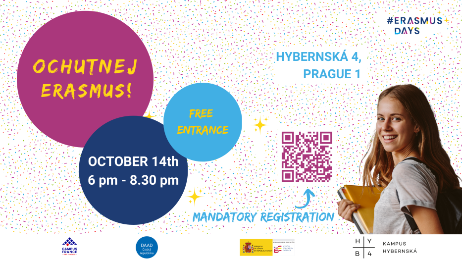 Le service de coopération éducative de l'Ambassade d'Espagne en République tchèque, le Centre d'information du DAAD à Prague (Allemagne) et le Bureau Campus France ont le plaisir de vous inviter à leur événement commun « Ochutnej Erasmus ! » le 14 octobre 2025 à 18h00 au Kampus Hybernská à Prague (Hybernská 4 - Prague 1).